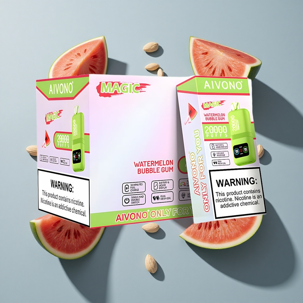 Aivono Aim Magic 20000 Puffs Watermelon Bubble Gum (Watermeloen Bubblegum) met 26ml E-vloeistof & LCD-scherm
