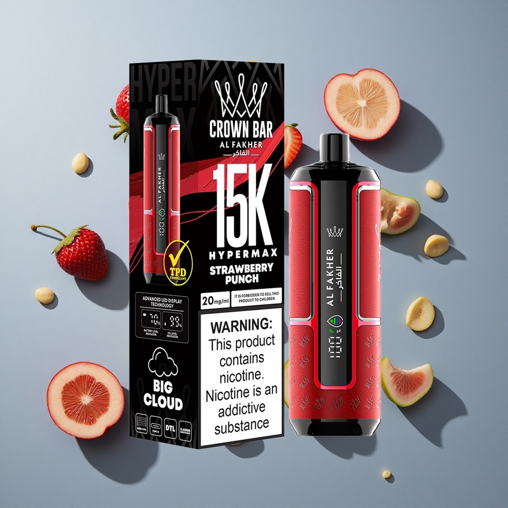 Al Fakher Crown Bar 15K Hypermax Wegwerp Vape Kit Aardbei Punch 22ml E-vloeistof, 15000 Puffs