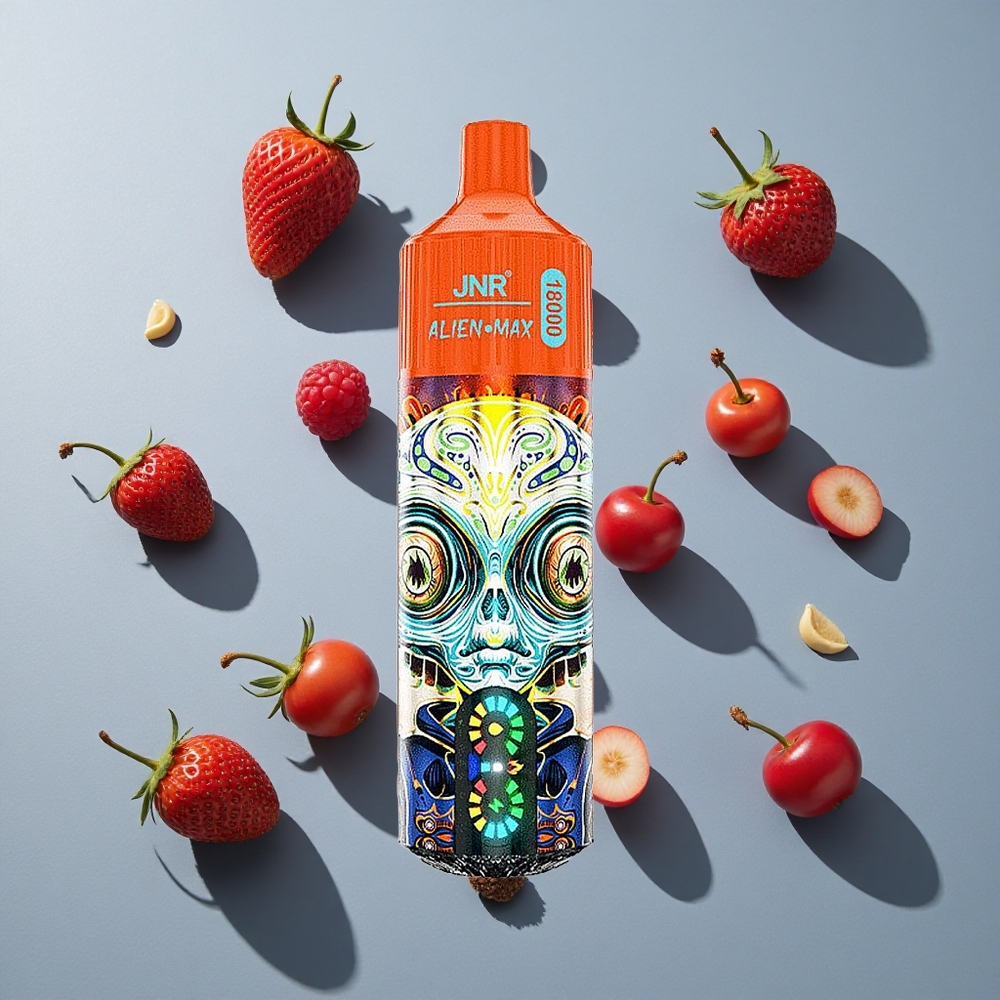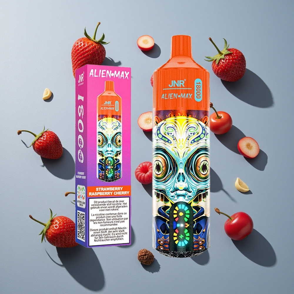 JNR Alien Max 18000 Puffs Aardbei Framboos Kers met Slim LED-scherm & Dubbele mesh-spoel