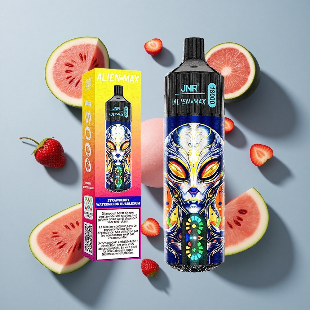 JNR Alien Max 18000 Puffs Aardbei Watermeloen Bubblegum met Slim LED-scherm & Dubbele mesh-spoel