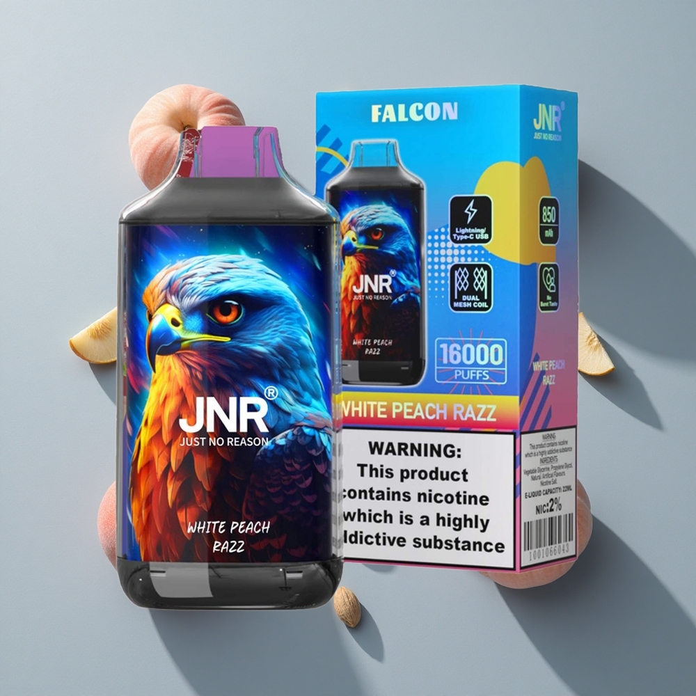 JNR Falcon 16000 Puffs White Peach Razz Dubbele mesh-spoel 22ml E-vloeistof