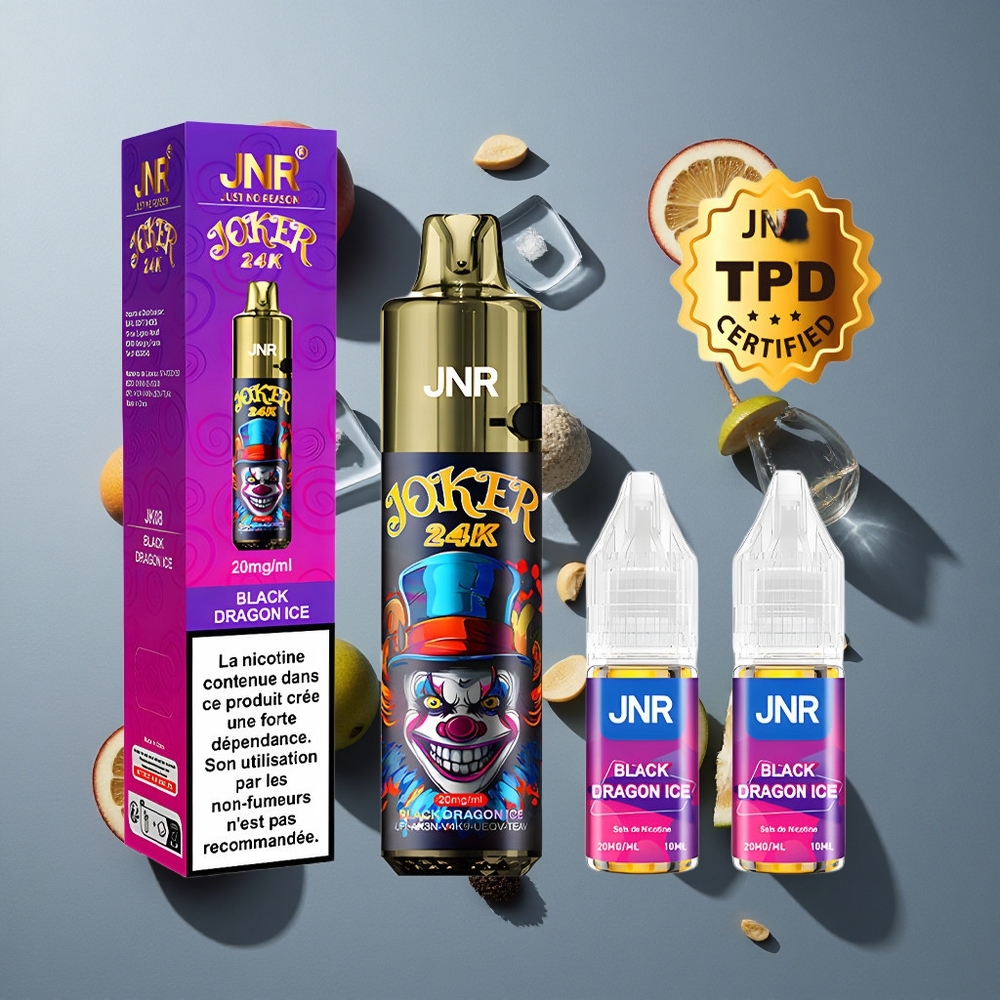 JNR Joker 24K Puffs Wegwerp Vape Zwarte Draak IJs 800mAh Accu