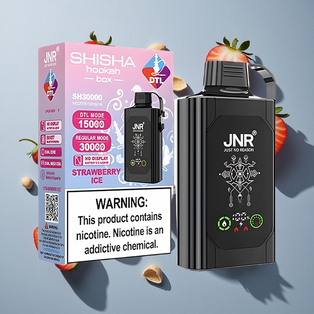 JNR Shisha Hookah Box 20500 Puffs Disposable Aardbei IJs HD Yerekana 25ml