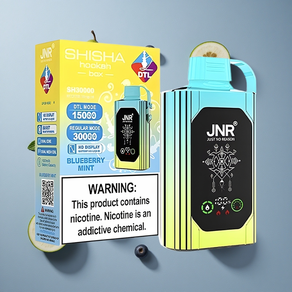 JNR Shisha Hookah Box 20500 Puffs Wegwerp Vape Blauwe Bes Munt met HD Yerekana & 25ml Vloeistof