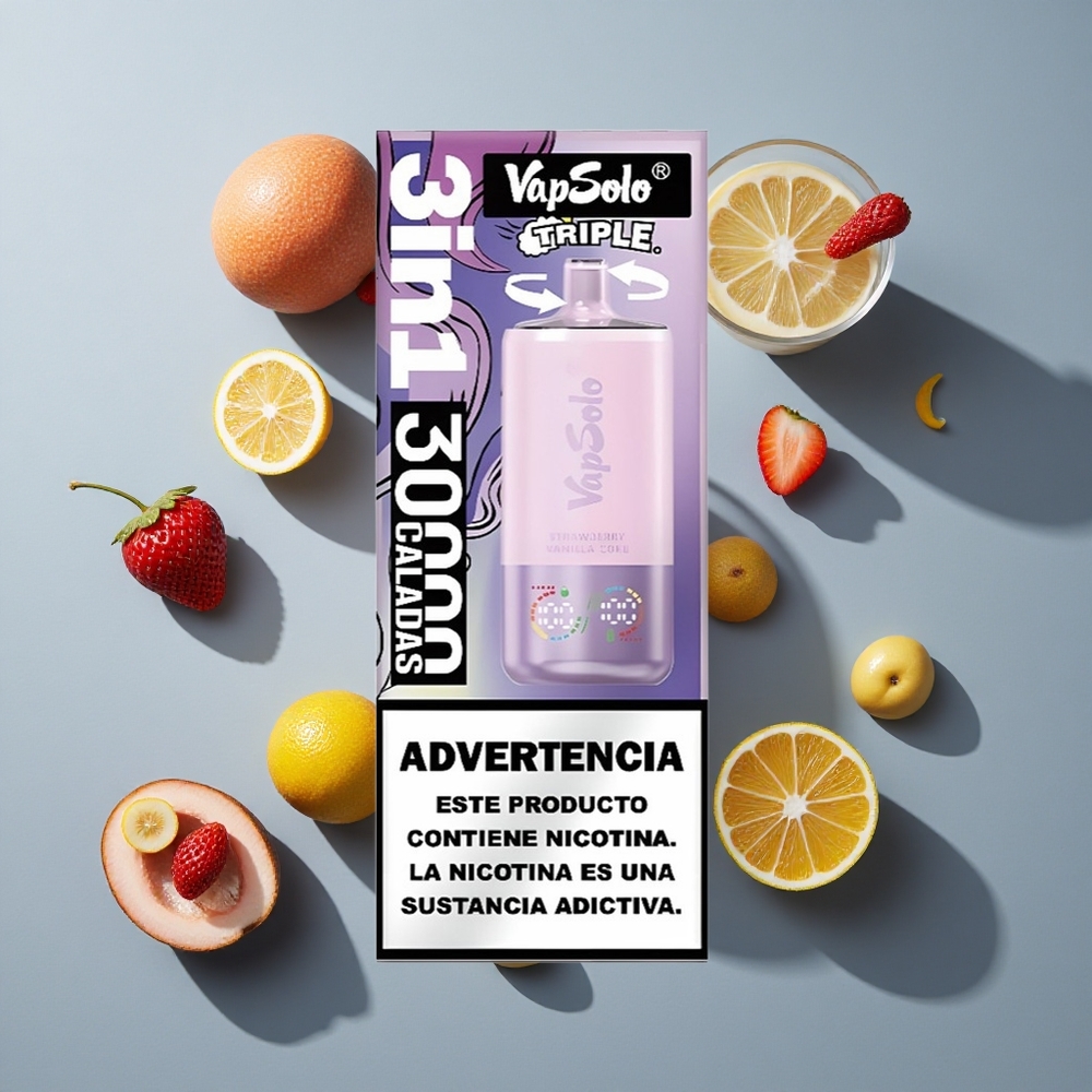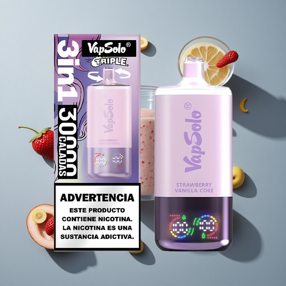 VapSolo Triple 30000 Puffs Aardbei Vanille Cola 40ml E-vloeistof Type-C Opladen