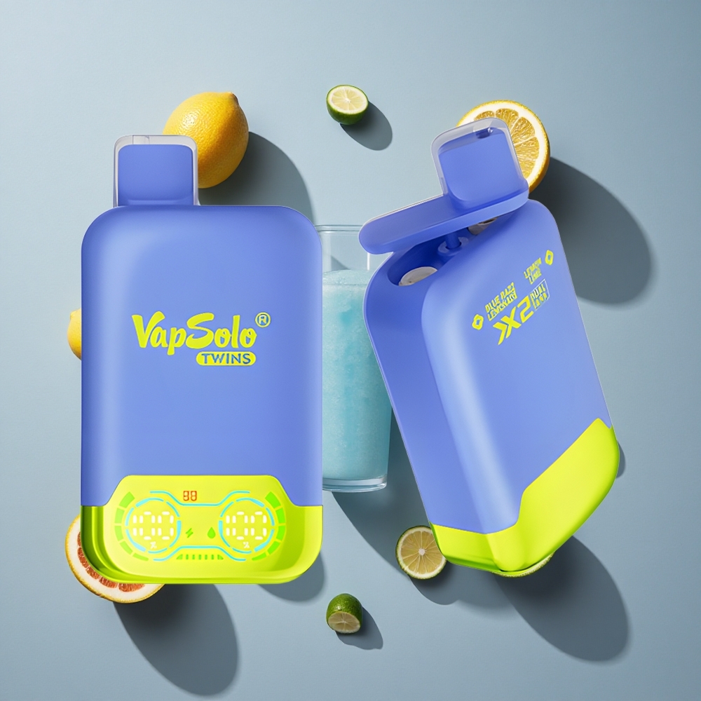 Vapsolo Twins 20000 Puffs Blauwe Framboos Limonade & Citroen Limoen 40ml E-vloeistof Dubbel Tank Type-C Opladen